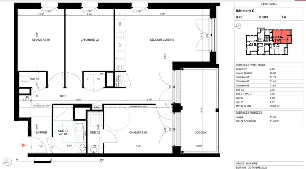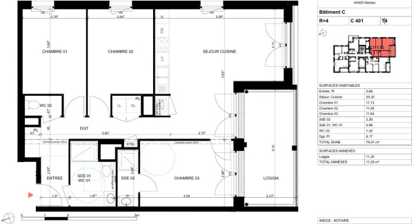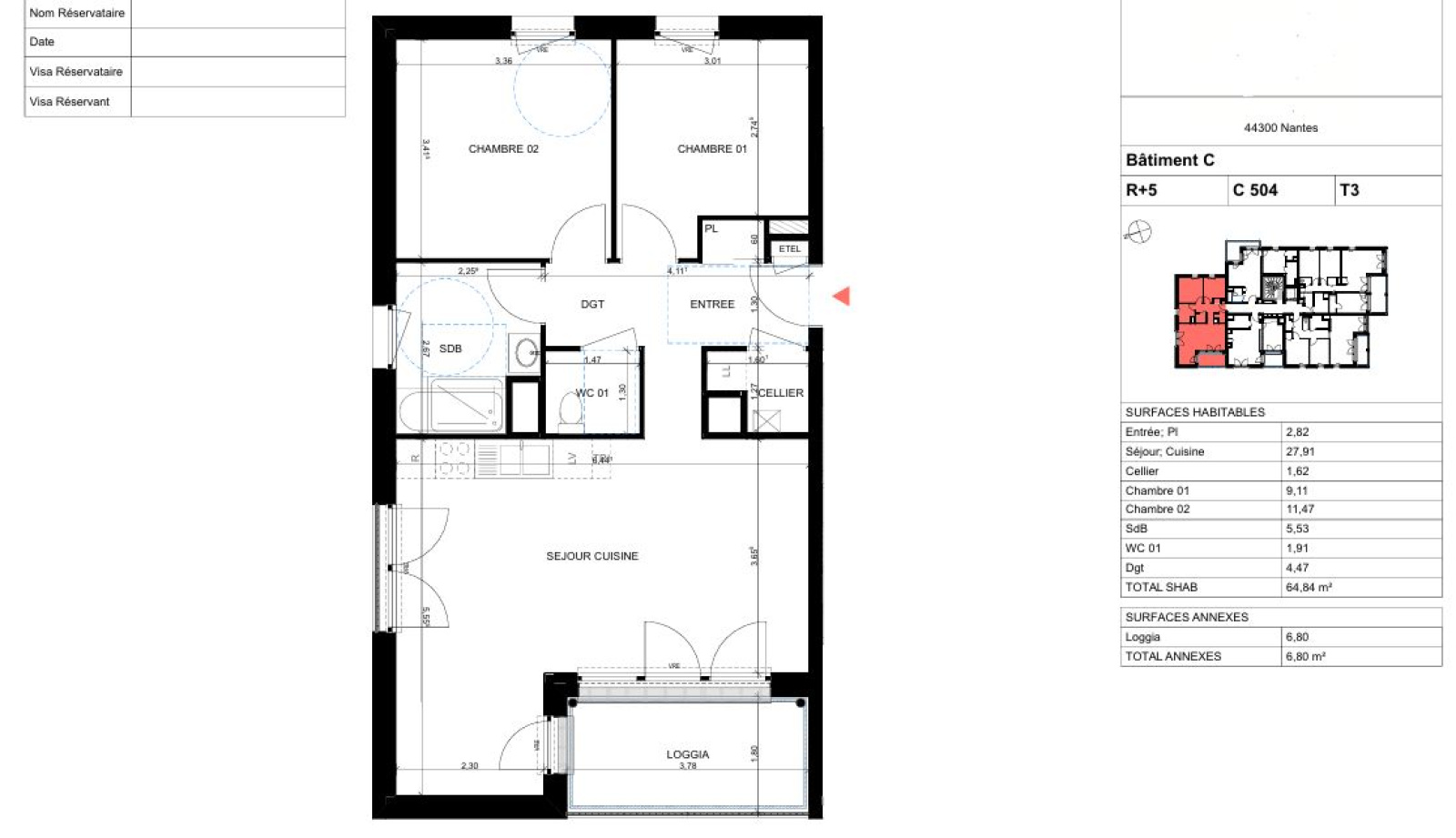 Spacieux et lumineux, il offre une surface habitable de 64,84 m² comprenant :