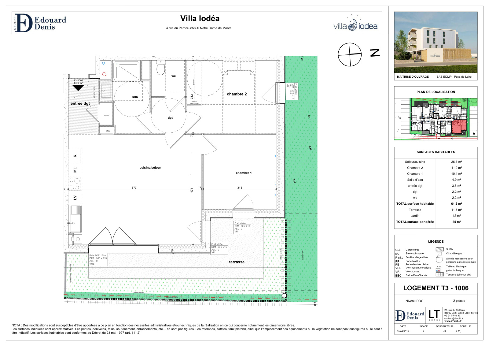 Bien situé sur la côte Vendéenne, au cœur de Notre-Dame-de-Monts. Résidence tout confort avec seulement 28 appartements neufs aux belles orientations, du 2 au 4 pièces prolongés par un jardin, un balcon ou une terrasse – Belles prestations -