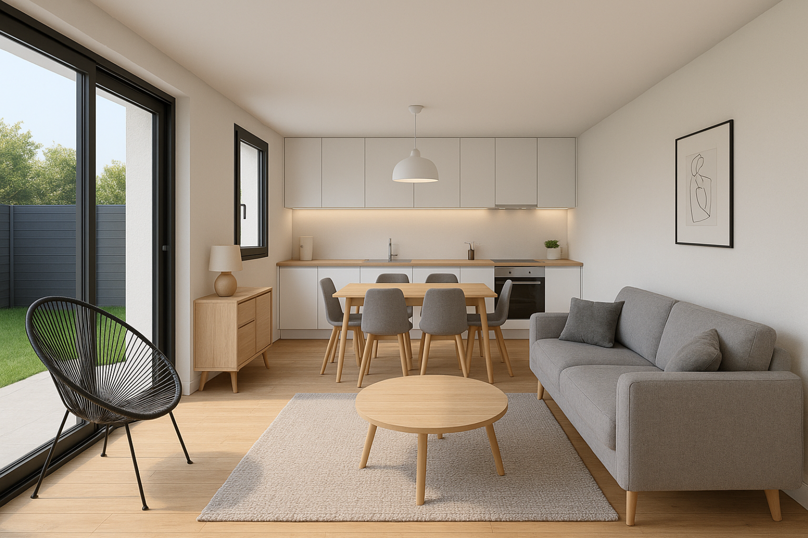 Séjour/Cuisine lumineux de 36,77 m² avec accès direct au jardin