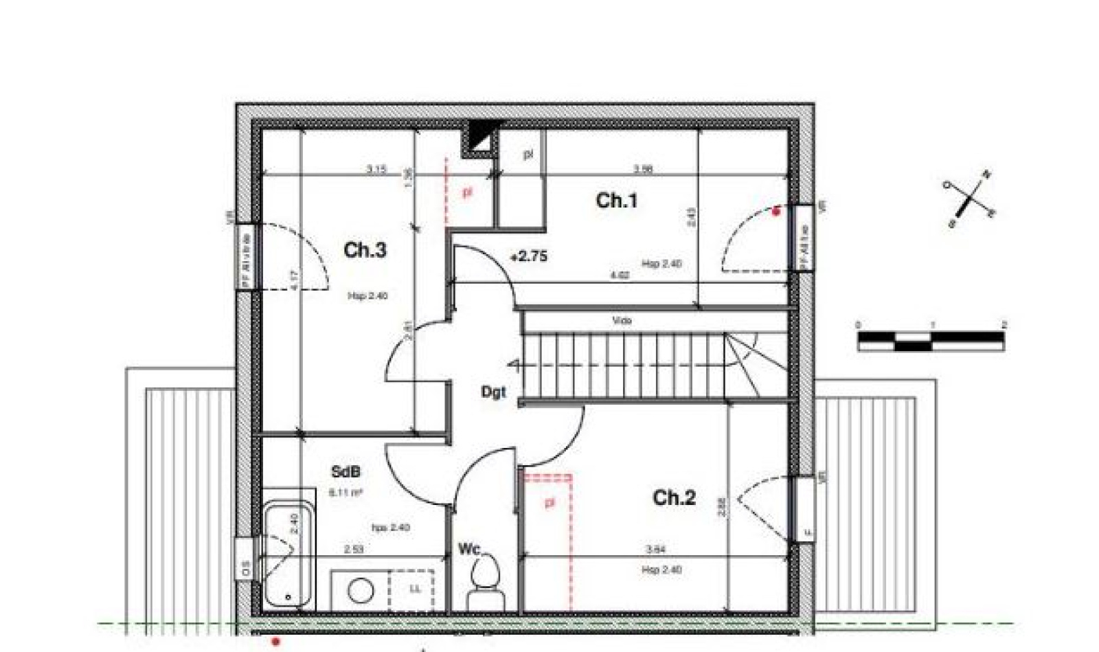 3 chambres confortables : 10,29 m², 10,48 m² et 11,28 m²