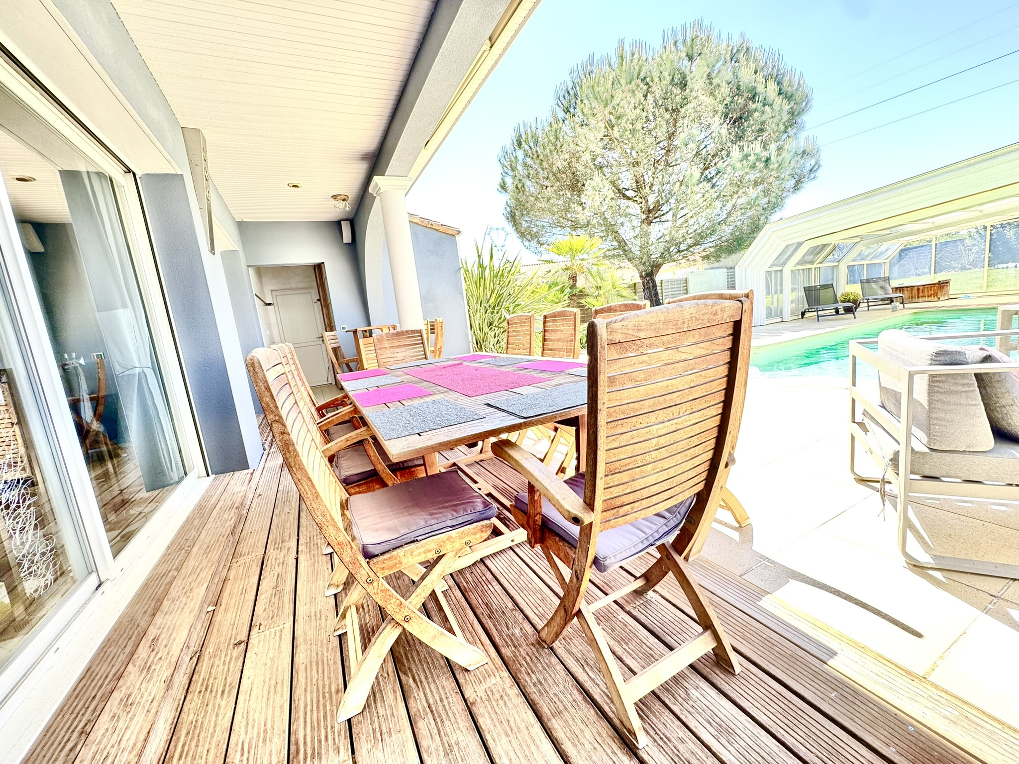 LES SORINIERES Venez vous laisser séduire par cette spacieuse maison contemporaine à la porte de Nantes dans la commune des Sorinières, offrant des accès facile aux grands axes, à l'aéroport, aux commerces. cette maison vous transportera en vacances grace à sa piscine et tout les espaces chaleureux qui l'entourent sur presque 1800m2 de terrain sans vis à vis. Plus de 250 m2 habitables majoritairement de plain pied offrant de son vaste hall avec dressing un accès direct sur une belle pièce de vie comprenant une salle de billard, un sallon de réception avec poêle à bois, une salle à manger et une cuisine semi ouverte aménagée et équipée. Pour une grande famille ou pour recevoir, vous trouverez en rdc 3 chambres et un bureau pouvant faire office aussi de chambre d'amis, une sde et un wc, à l'étage pour votre tranquilité vous retrouverez une suite parentale comprenant, une grande chambre avec terrasse privative, une pièce dressing, une sdb avec baignoire, douche, wc et une mezzanine aujourd'hui aménagée en salle de sport mais pouvant faire office aussi de bureau si vous souhaitez rester connecté avec le reste de la famille et pouvoir garder un oeil sur le beau jardin qu'offre cette agréable maison. Son jardin est sans vis à vis et offre de très spacieux espaces de terrasses et une piscine couvrable sur sa totalité pour en profiter toute l'année grace à son accès direct de la maison.A visiter avec votre agent de proximité spécialiste du secteur